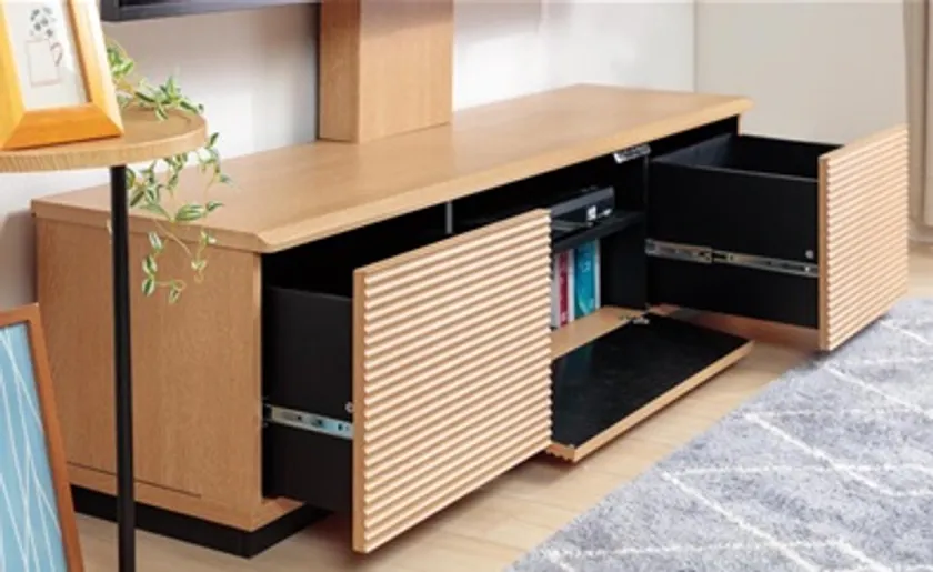 リモコン操作でテレビの高さを自由に昇降(電動昇降幅300mm)、あなたの視聴スタイルにテレビの高さを合わせます。高さを3つまで記憶できるので、瞬時にお気に入りの高さにセットすることができます。最近注目されている電動ソファとあわせてお使いいただければ、より一層快適にテレビをご視聴いただけます。また、奥行320mmの大型収納(容量34リットル)を左右に装備、メディア類・ゲーム機等をすっきり収納いただけます。