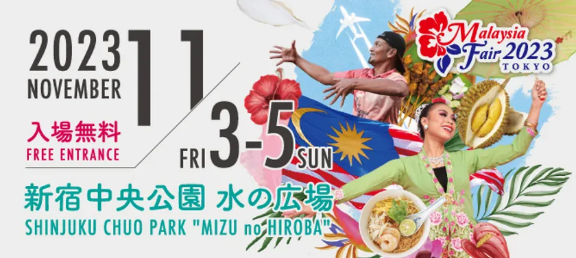 駐日マレーシア大使館は、2023年11月3日(金)から11月5日(日)まで、新宿中央公園にて「マレーシアフェア2023」を開催いたします。本イベントはCOVID-19 パンデミックを乗り越え、2019年の開催以来、4年ぶりとなります。