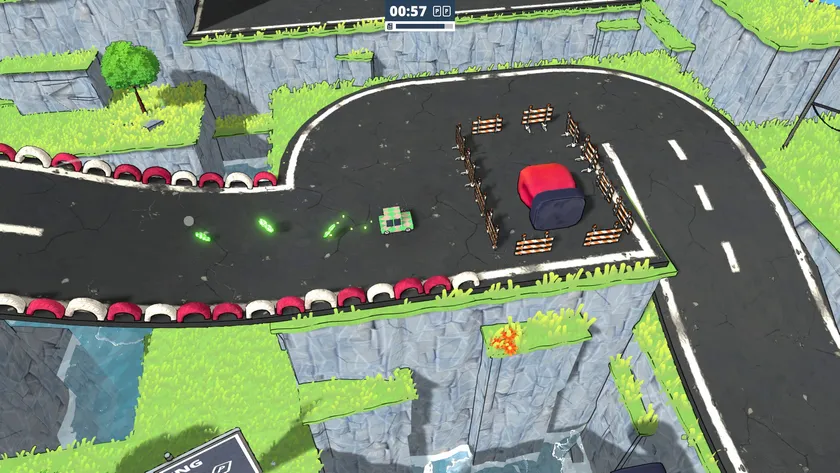 磁石とは対照的に、巨大な扇風機は突風で車をコース外に吹き飛ばしてしまいます。ドライバーを困らせる扇風機ですが、レベルによっては、その風力を利用してコースを飛び越えることも必要です。扇風機を見つけたら、近づかないようにするのか、それとも風に従って進むのか。それを判断するのはプレイヤー次第です。