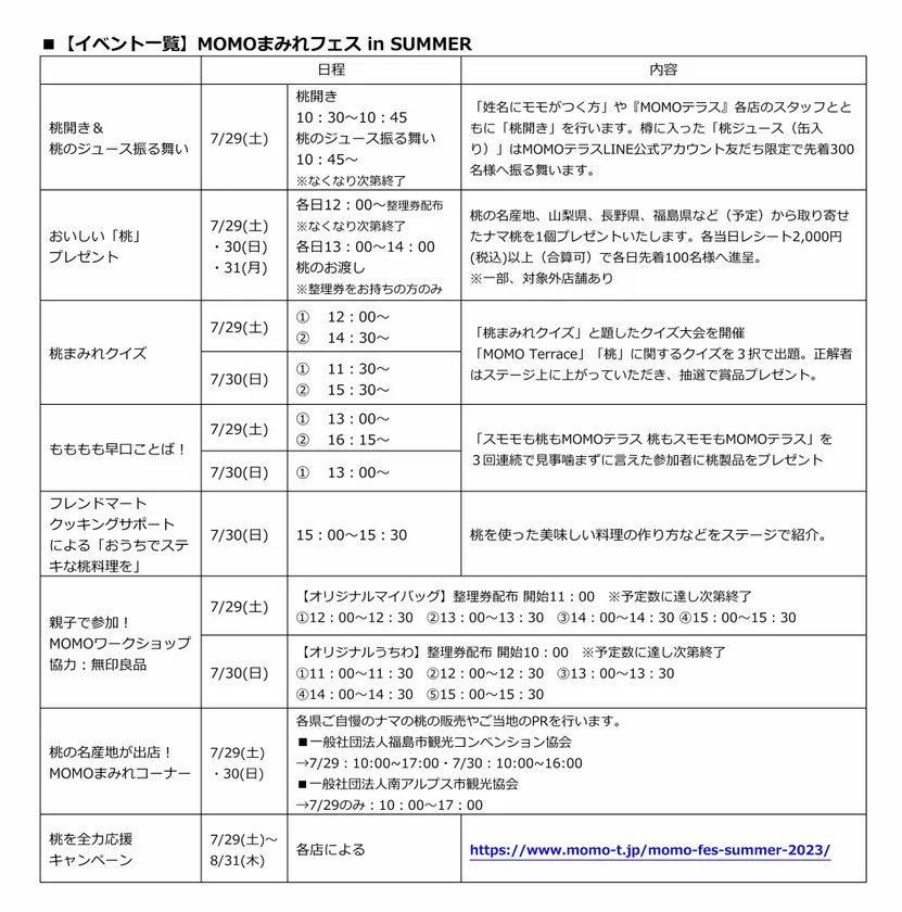 ■ MOMOまみれフェス in SUMMER 『MOMOテラス』各店ご協力イベントも、ぞくぞく開催!