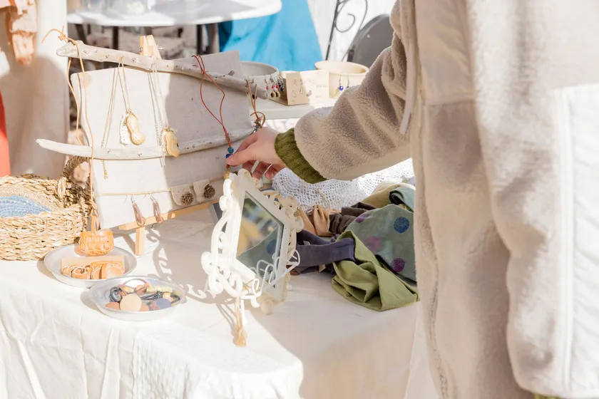 ・女性クリエーターや主婦の方々が出店し、一つ一つ丁寧に作られた手作り作品(アクセサリー、インテリア、小物系、バッグ等)を販売