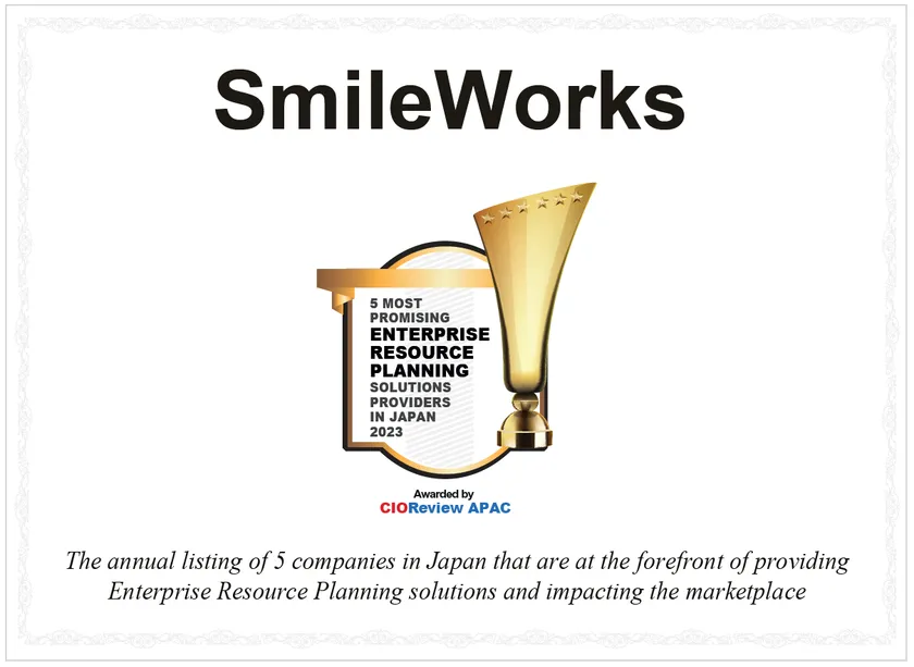 今回、スマイルワークスが「CIOReview APAC」による「Enterprise Resource Planning Solutions Companies in Japan - 2023」のなかで、「日本のTOP ERPベンダー」として表彰いただけた背景としましては、