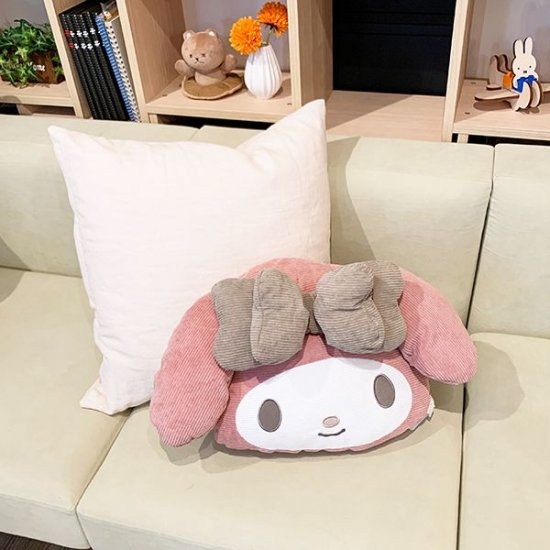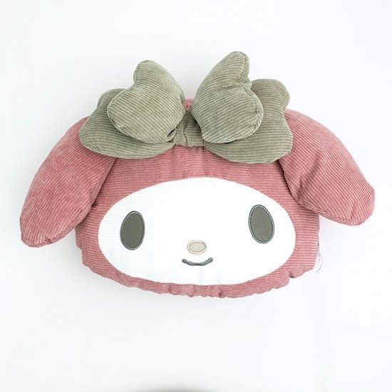 まずは大きなリボンが特徴的なマイメロのお顔クッション!コーデュロイ生地のクッションなので見た目も暖か♡しかも落ち着いた色使いがちょっぴり大人でオシャレ!