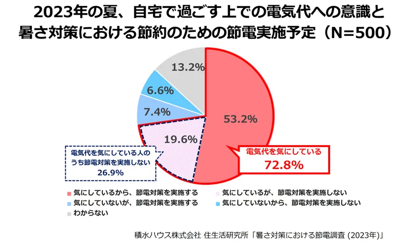 ・引用元が「積水ハウス株式会社 住生活研究所」による調査である旨と、引用元調査「暑さ対策における節電調査 (2023年)」の記載をお願いします。
