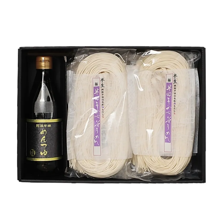 徳島県が誇る阿波半田手延べそうめんは他産地の素麺と比べて少し太めで、ふっくら感と弾力性のあるコシの強さが特徴です。ご自宅用、そしてギフトにもピッタリの逸品です。その他も様々なギフトセットをご用意しております。