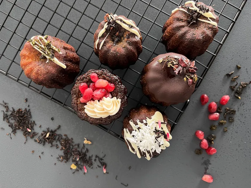 通常より大きい約直径5cmのカヌレ型を使用することで、歯ざわりの良い外側のカリッとした触感と弾力があるしっとりとした内側の生地が楽しめHARNEY & SONS の茶葉の香りが十分に閉じ込められており、素材本来の美味しさとブレンドされたティーの香りを楽しんでいただけます。