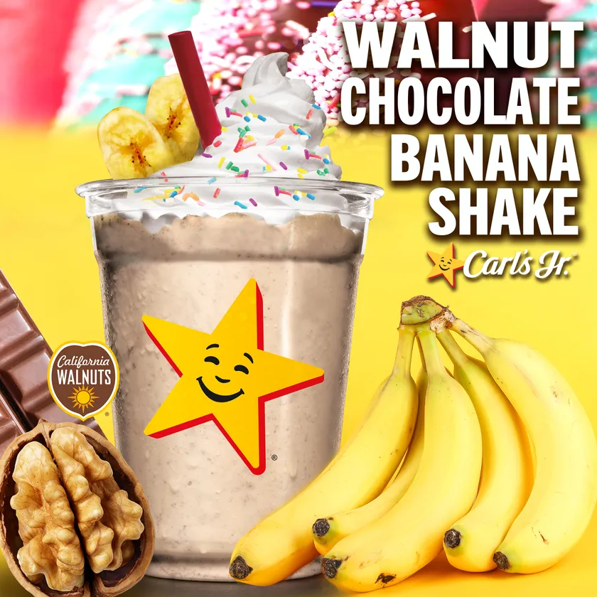 カリフォルニアのくるみ生産農家と加工業者を代表するカリフォルニア くるみ協会は、カールスジュニアジャパン株式会社(本社:東京都中央区)が展開する米国カリフォルニア発プレミアムバーガーレストラン「Carl's Jr.(R)」(以下、カールスジュニア)との共同企画として、7月14日(金)よりカリフォルニア産くるみを使用した「ウォールナッツ チョコバナナ シェイク」が販売されることをご案内いたします。