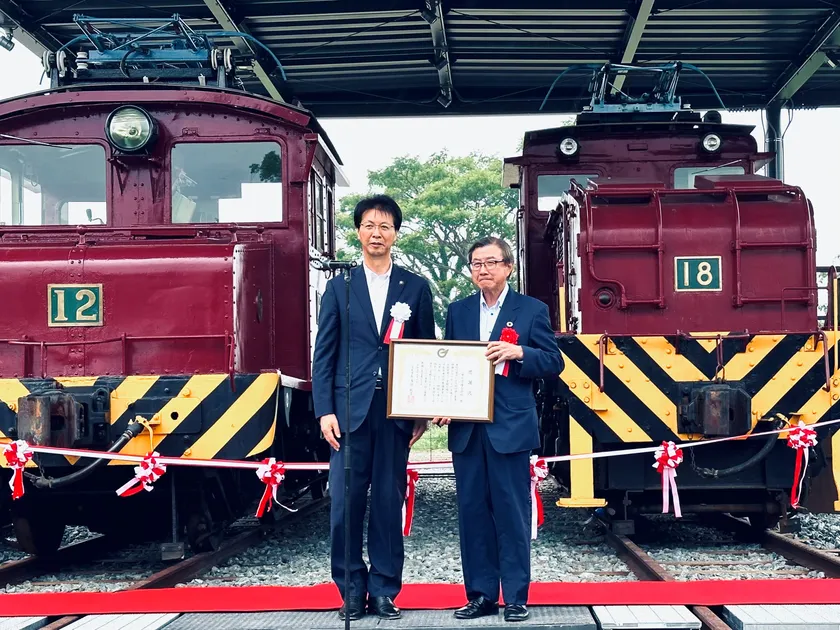 三井化学株式会社(本社:東京都中央区、代表取締役社長:橋本 修)は、熊本県荒尾市(市長:浅田 敏彦)が実施する炭鉱電車保存整備事業に企業版ふるさと納税制度(*1)を活用して、2,500万円を寄附しました。本整備事業は、2020年5月に廃止となった三井化学専用線(旧三池炭鉱専用鉄道)で使用されていた炭鉱電車を、世界文化遺産である万田坑(熊本県荒尾市)へと移設し、保存展示するための整備を行うものです。今般、7月8日に「万田坑炭鉱電車一般公開記念式典」が開催され、同市より感謝状を授与されました。