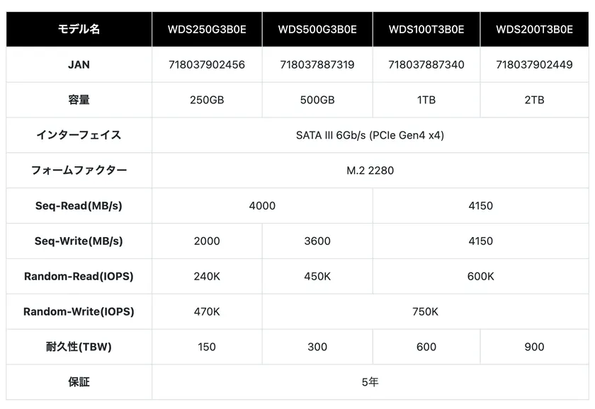 ■新製品 WD Blue SN580 NVMe SSD 概要