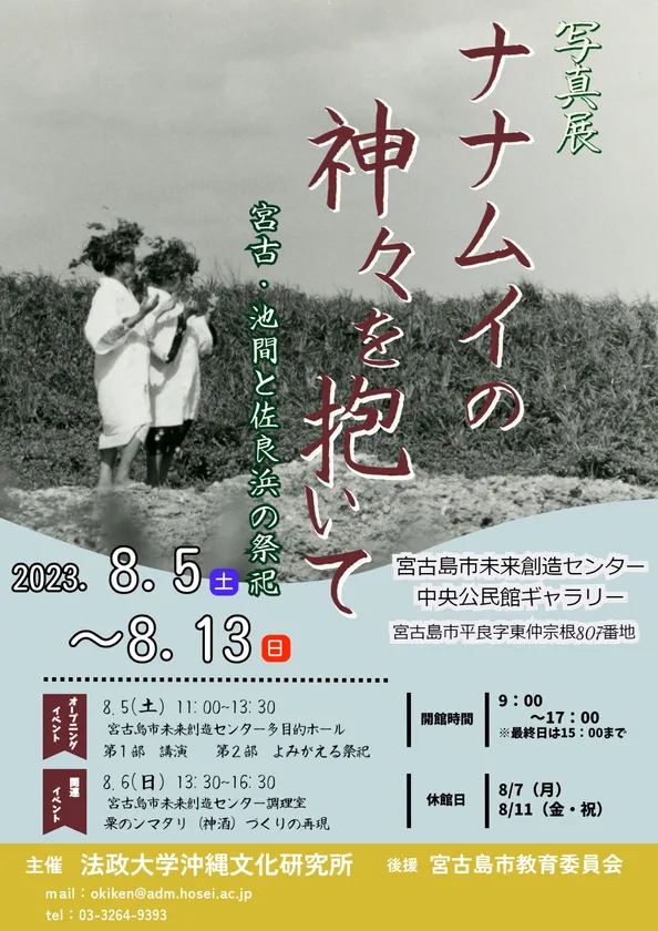 法政大学沖縄文化研究所は、写真展「ナナムイの神々を抱いて―宮古・池間と佐良浜の祭祀―」を2023年8月5日(土)~8月13日(日)に宮古島にて開催します。