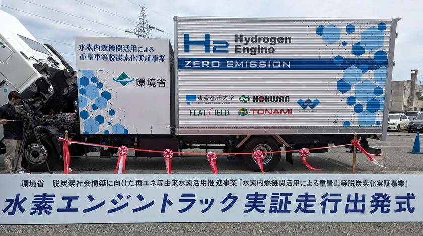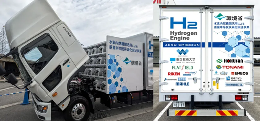 この水素エンジントラックは、株式会社フラットフィールド、東京都市大学、トナミ運輸株式会社、北酸株式会社、株式会社早稲田大学アカデミックソリューションが提案した「既販中型重量車の水素エンジン化事業性検証プロジェクト」が、環境省の2021年度「水素内燃機関活用による重量車等脱炭素化実証事業」に採択され、2021年8月より共同研究を進めてこられたものです。