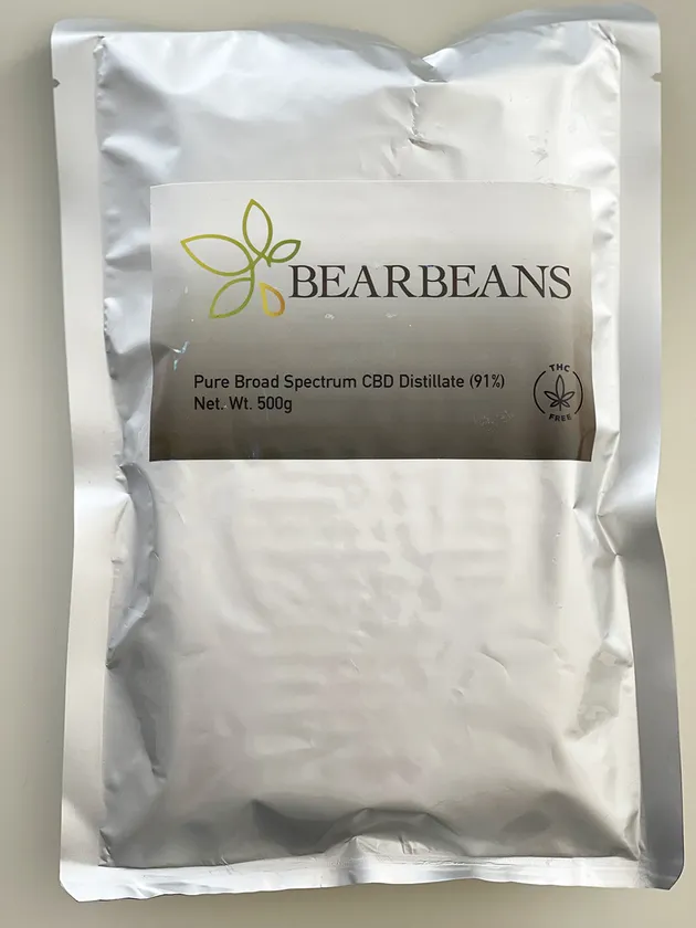 ブロードスペクトラムCBD原料(ディスティレート)は、結晶化した状態(アルミパウチ)でお届けします。湯煎で溶かしてご利用下さい。即納対応も可能ですので、お急ぎの方にもおすすめです。原料の取扱につきましては別途詳細をご案内しています。