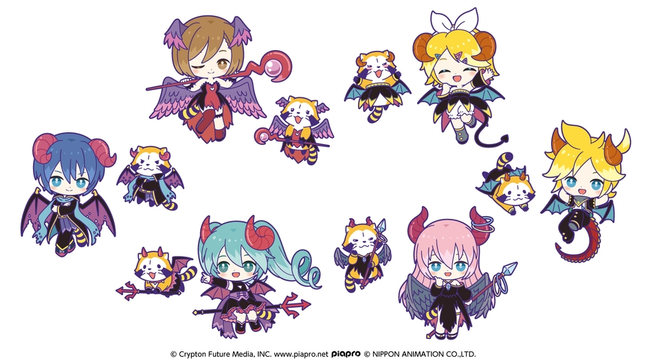 デフォルメイラストをリニューアル!今回は「悪魔」をテーマに、ダークな衣装に身を包んだピアプロキャラクターズと「ラスカル」のイラストを作成しました。また、「ヴィランズ」をテーマにした等身バージョンのイラストを、イラストレーターのあるてらさんに描き下ろしていただきました。
