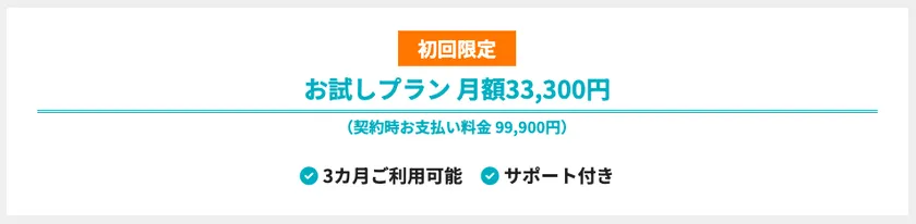 ※初回契約月は無料です(例:6月中にお試しプラン契約→契約月無料+3カ月で、最大9月末までご利用可能)。