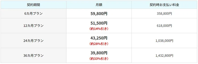 ※6カ月未満での契約は行っておりません。