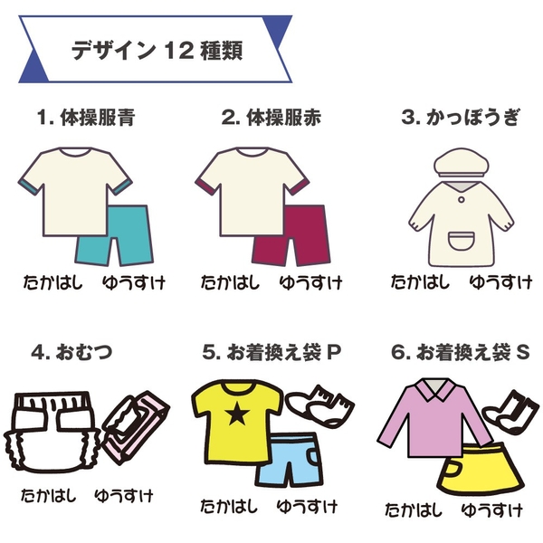 名前入りで間違え知らず、かわいいイラストで持ち物管理もラクラク◎