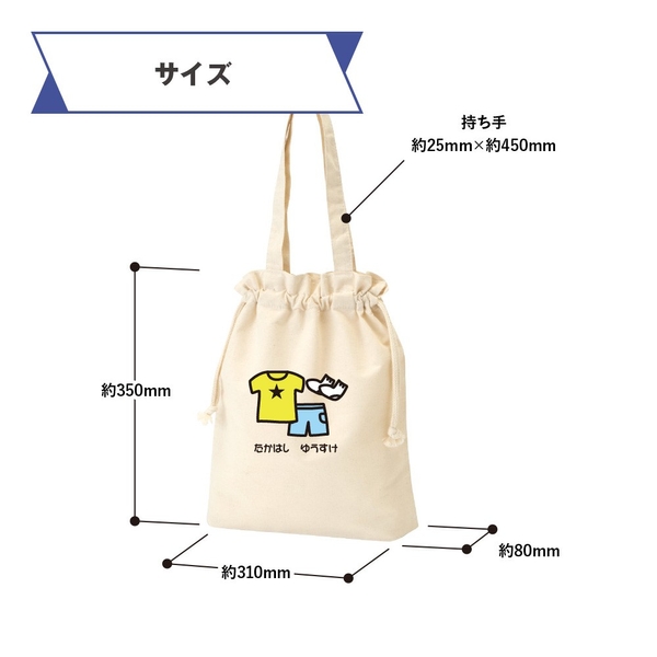 この巾着バッグは、エコマークを取得した無漂白コットン素材を使用しています。