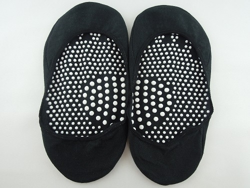 スベリ止め位のツブなら簡単につきますが、しっかり刺激をしながら長時間履いていても痛すぎない高さの実現、柔軟性、洗濯してもとれないツブ加工には苦労しました。しかし、足袋発祥の地、奈良のツブ加工会社のご協力のもと、5年の歳月をかけて開発し本商品が完成しました。