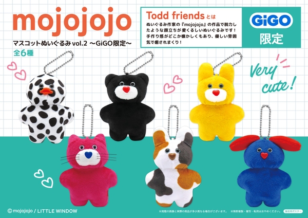 株式会社GENDA GiGO Entertainment(本社:東京都港区 代表取締役社長:二宮 一浩、以下「当社」)はGiGOグループのお店において、2026年1月10日(土)より、大人気のぬいぐるみ作家「mojojojo」が手掛ける脱力したような愛くるしい顔立ち、懐かしく優しい作りが特徴のマスコットぬいぐるみが、GiGO限定景品として順次展開いたします。