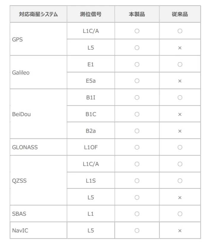 本製品と従来品における対応衛星システムの比較