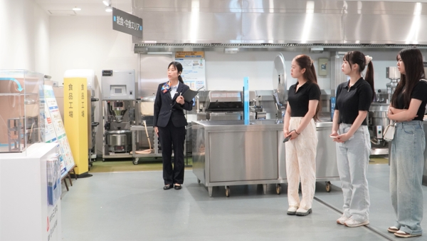 大阪国際大学短期大学部(大阪府守口市、学長 宮本郁夫)栄養学科では実践力を持った栄養士を養成するため、学外施設での研修など様々な専門教育に関するプログラムを実施しています。その一環として、今年度は2年生前期科目である栄養士総合演習Ⅰにて2回にわたり大阪ガスハグミュージアム「hu+g MUSEUM」での研修を実施しました。第2回目の8月8日(木)には業務用厨房施設の見学とエコクッキングに関する講義を受講しました。