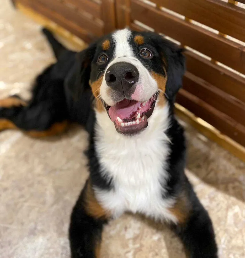 パークエリアにはよちよちと歩く小さなワンちゃんが仲間入りします。パグやチワワ、シーズーに混じって何やら大きな赤ちゃんが。バーニーズマウンテンドッグの子犬が元気よく駆け回ります。