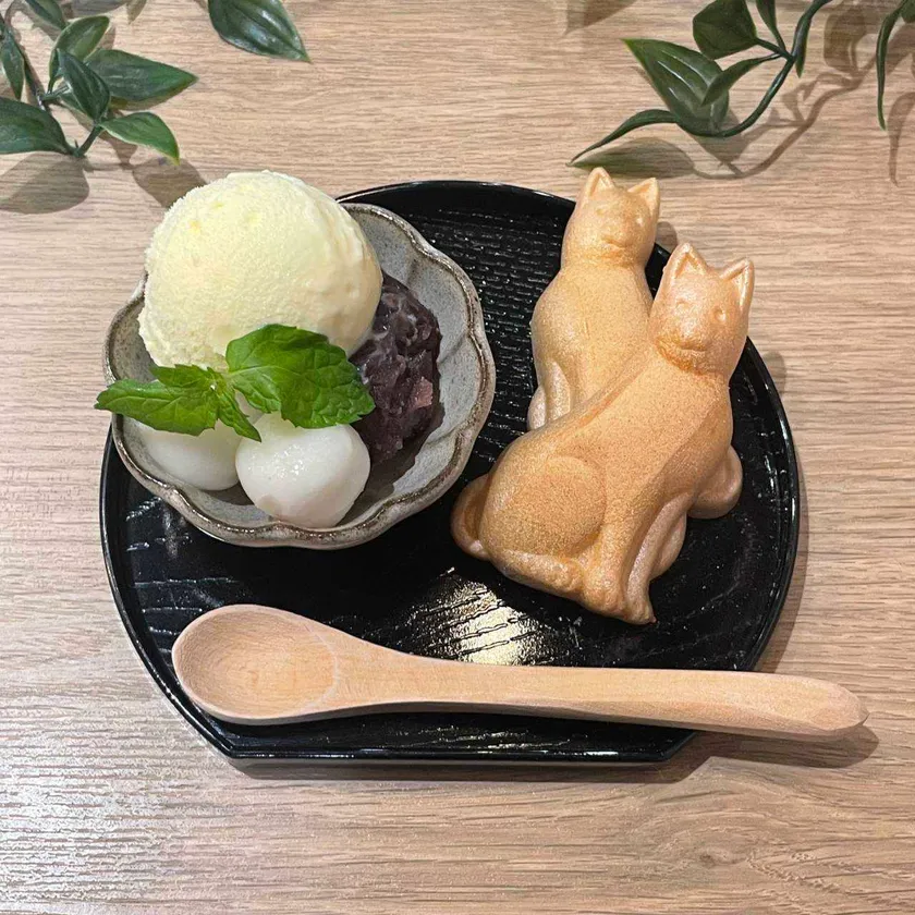 ガーデンエリアに仲間入りする「秋田犬のハチ」にちなんだ和風スイーツ、その名も「サクッと和ん和んモナカ」です!サクサクっとした食感の和んちゃん型モナカに、白玉やあんこ、ひんやりアイスを乗せてお召し上がりください。