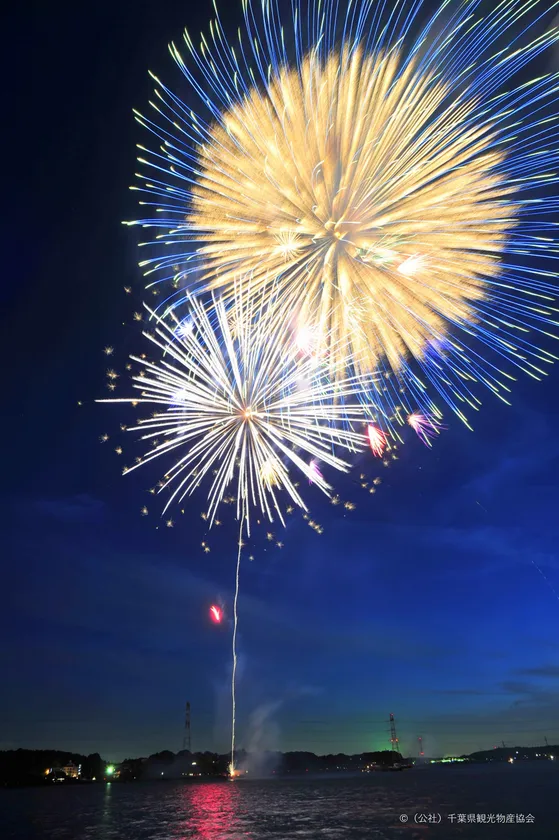 柏と我孫子の2会場から望む夜空には、東京タワーとほぼ同じ高さまで上昇する尺玉や、大迫力のウルトラジャンボスターマイン、子供たちに大人気のキャラクターマインなど湖上からの打ち上げ花火が彩ります。