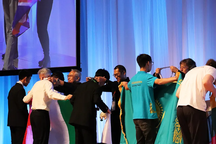 「国際数学オリンピック日本大会(IMO2023)」表彰式でのメダル授与の様子