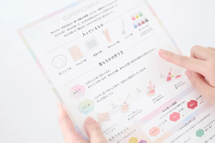 雲もなかは、子どもからお年寄りまで誰でも簡単に作ることができます。「どうしてその色にしたの?」そんな質問から世代を超えた優しい会話が生まれます。
