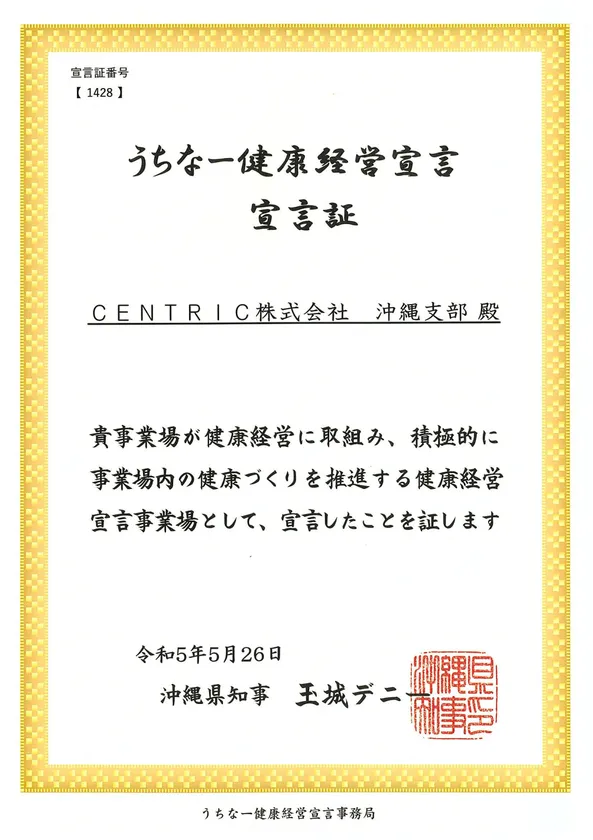 CENTRIC沖縄支店 健康経営の取り組みとして 「うちなー健康経営宣言」を実施