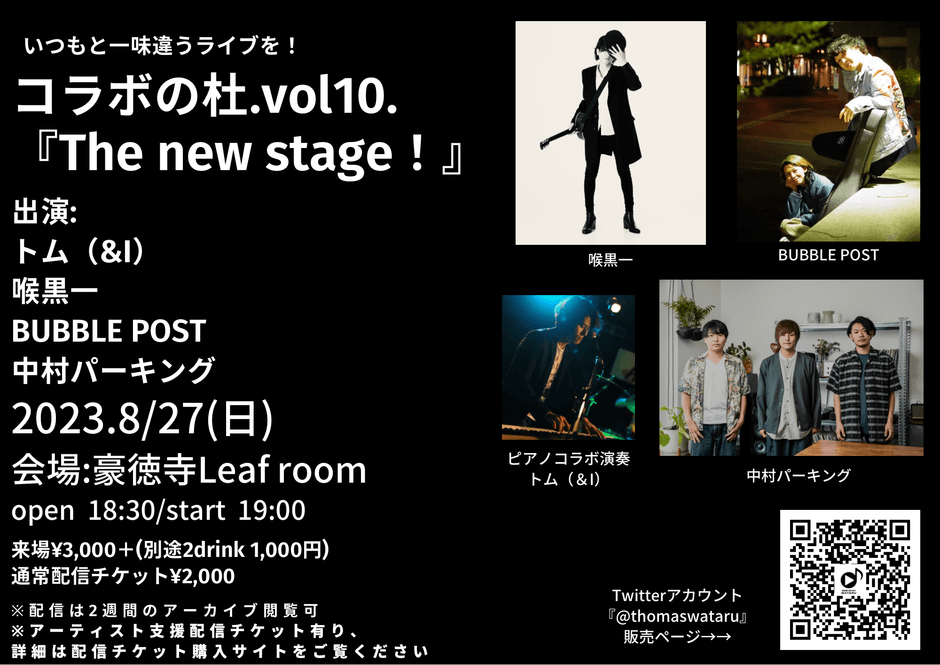入場料:3,000円+1drinkオーダー/配信チケット2,000円〜