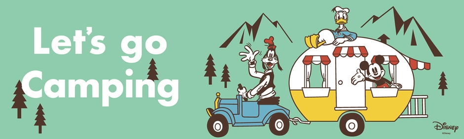 「外に出かけよう!」「自然を楽しもう!」をコンセプトに、ミッキー&フレンズの “Let's go Camping ”をテーマにしたアイテムを多数ラインナップ。1938年公開の短編映画 Mickey's Trailer (ミッキーの移動住宅)からインスピレーションを得て、30年代オールドスタイルのディズニーキャラクターアートを使用し、レトロアメリカンの世界観をイメージしました。