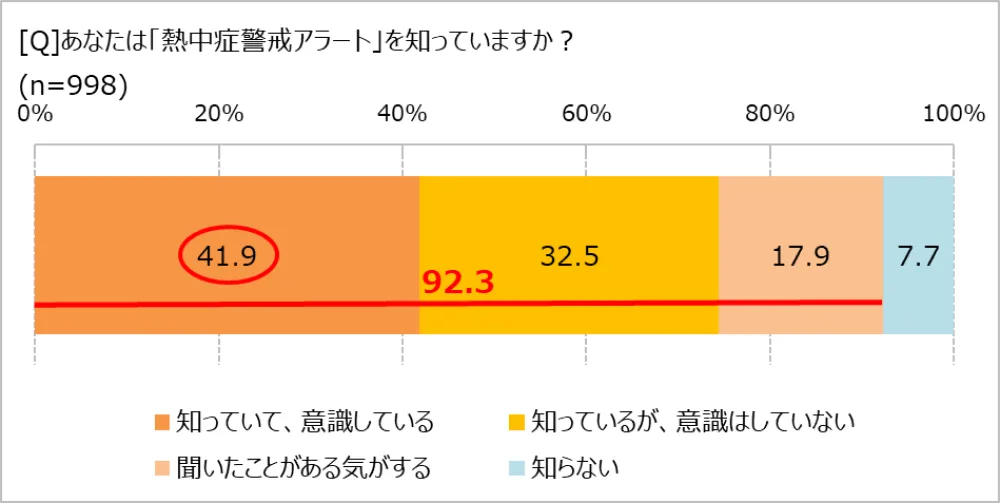 「熱中症警戒アラート」、知ってはいけるけど意識している人は半数以下