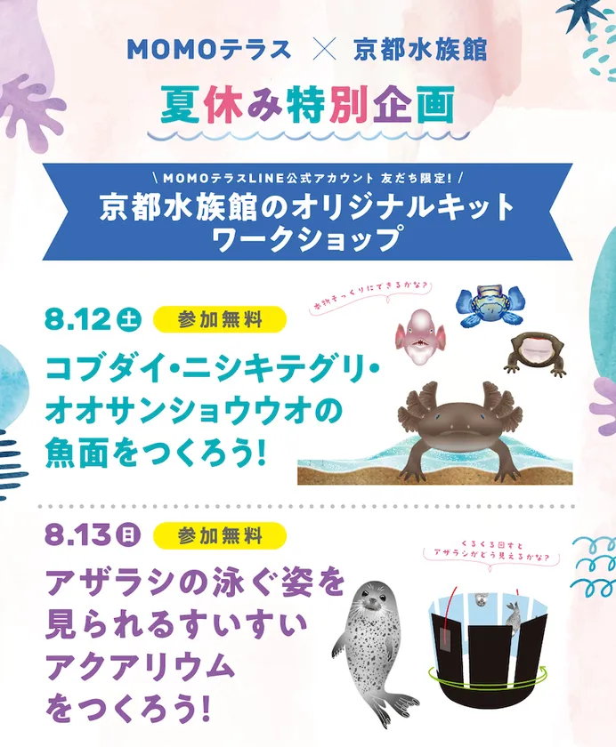 『MOMOテラス』×『京都水族館』 「水の生きものも、もっと!知ろう」キャンペーンを8/1~31開催