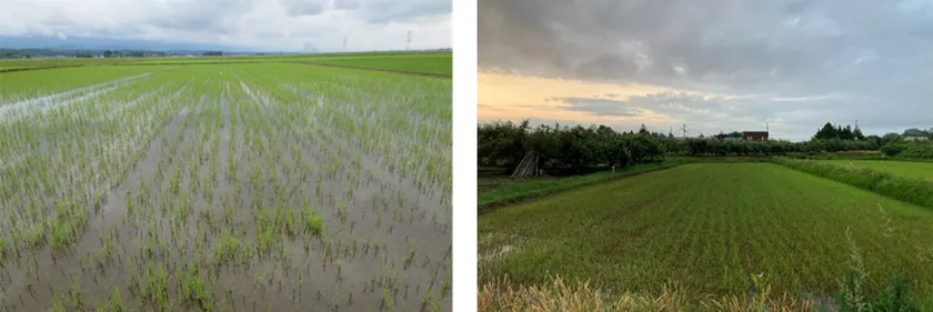 画像右:2023年度青森県黒石市:株式会社アグリーンハート様_品種:まっしぐら_播種後35日