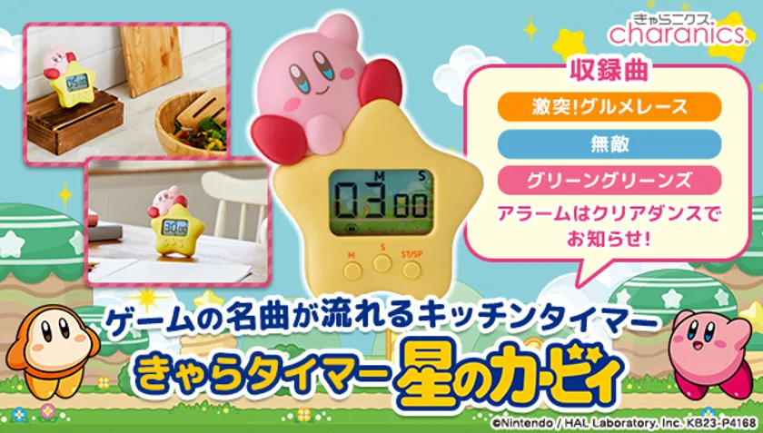 料理や作業の時間管理など、さまざまなシーンで活躍する便利なタイマーでそれぞれの設定時間中、『星のカービィ』のゲームBGMを楽しむことができる商品です。(発売元:株式会社シー・シー・ピー)
