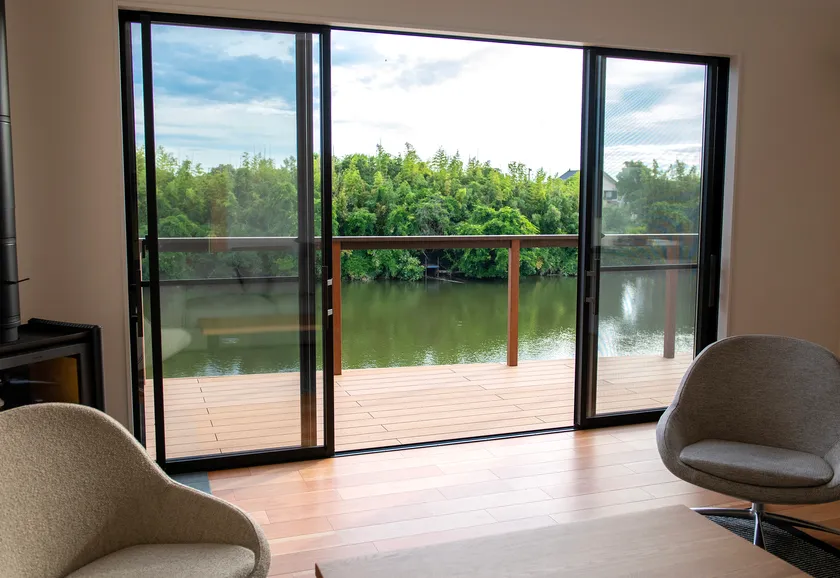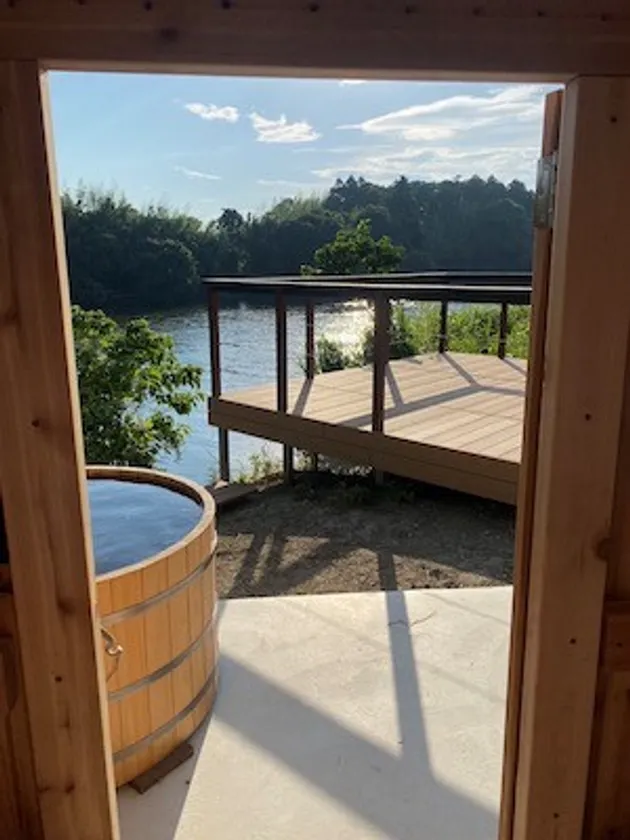 また、デッキから川にアクセスすることができ、SUPボード、カヤック、そしてバレルサウナなどのアクティビティを体験できます。