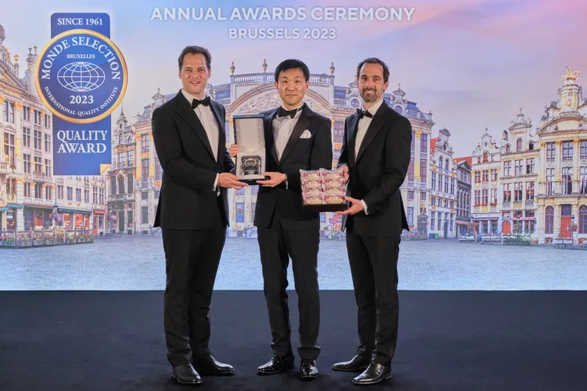 モンドセレクション授賞式にてPrize of the Juryの賞を受け取る石黒 和彦代表取締役(中央)