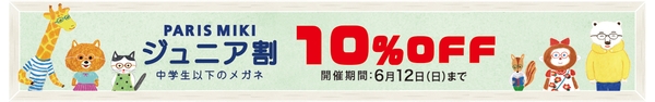 新年度がスタートし、新しい学校生活が始まる子どもたちをサポートする「パリミキ ジュニア割」キャンペーン。中学生までのお子さまを対象に、メガネ1組お買い上げの際、レジにて10%OFF!