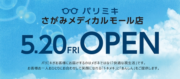 「パリミキ」を展開している株式会社 パリミキ(本社:東京都港区、代表取締役社長:澤田将広)は、2022年5月20日(金)神奈川県相模原市に「パリミキ さがみメディカルモール店」をOPENいたします。
