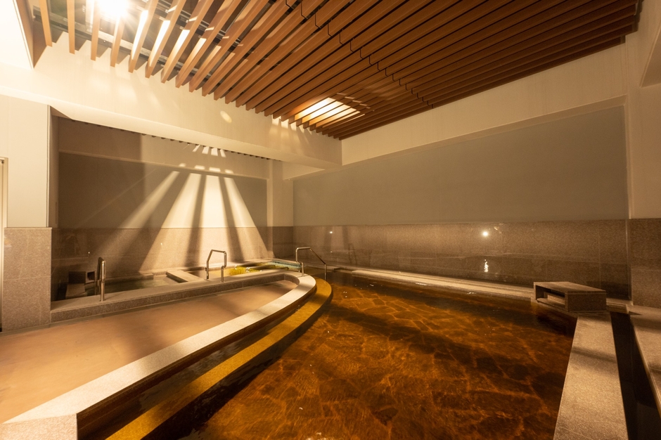 沖縄県内では数少ない天然温泉。地下500メートルより湧出する天然温泉を有し、身体を芯から温める「含ヨウ素ナトリウム塩化物温泉」です。1階の大浴場と2階露天風呂、サウナを完備し、旅の疲れを癒します。