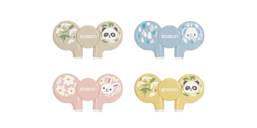 カラーは流行りに敏感なママ・パパに手に取っていただけるように、くすみカラーを採用。落ち着いた柔らかい色合いは食卓にも馴染みやすいです。また、「エジソンのお箸」シリーズで使用しているデザインは、お箸の各対象月齢に人気の動物を採用しています。(自社アンケート(n=144)参考)