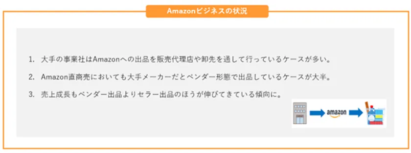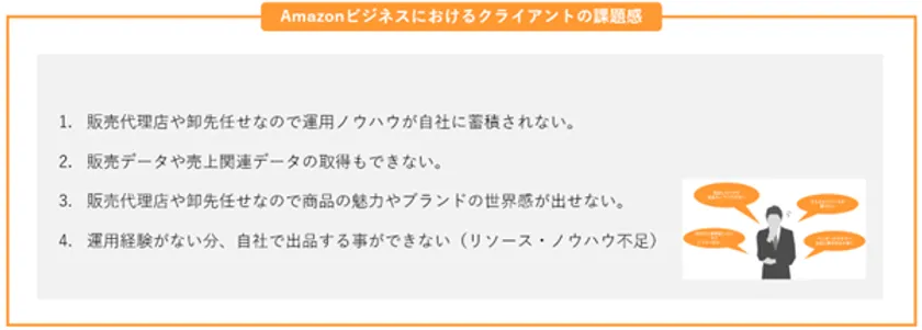 (2)特にAmazonに関しては商売形態上、販売や運営自体を卸先や代理店に任せているケースも多い。そのためノウハウやデータの蓄積も難しい。