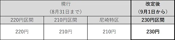 ※現行区間「220円区間」、「210円区間」及び「尼崎特区」は、新区間「230円区間」に統一となります。