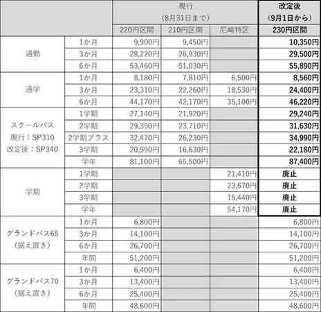 ※尼崎特区における「学期定期」は販売を終了します。