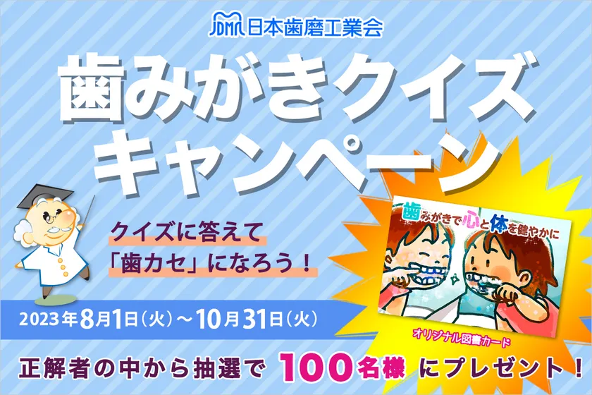 日本歯磨工業会(所在地:東京都中央区、会長:濱 逸夫)は、「歯みがき」に関するお役立ち情報を親しみやすく発信する啓発サイト「みがこうネット」にて『クイズに答えて「歯カセ」になろう!歯みがきクイズキャンペーン』を2023年8月1日(火)~10月31日(火)の期間で実施します。