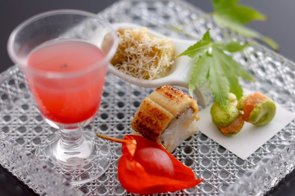「愉しく美味しいお食事を」との料理長の想いのもと、美しい演出とひと皿ひと皿に丁寧な手仕事を添えてお届けします。匠の技が光る、目にも舌にも嬉しいひととき、どうぞごゆるりとお召し上がりください。