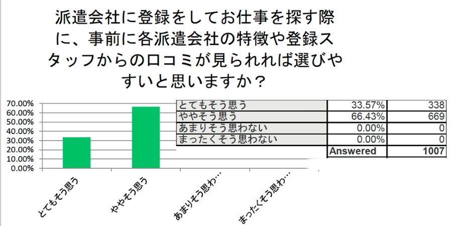 派遣会社に登録をしてお仕事を探す際に、事前に各派遣会社の特徴や登録スタッフからの口コミが見られれば選びやすいと思いますか?