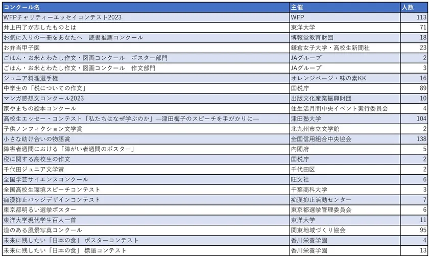 麹町学園女子の生徒が自分で選んだコンクール・コンテストに参加 計24のコンクール・コンテストに延べ747名が応募